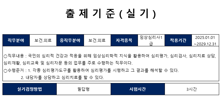 임상심리사 1급 시험은 필기와 실기로 나뉘어 있습니다. 필기시험은 다음과 같은 과목으로 구성됩니다: